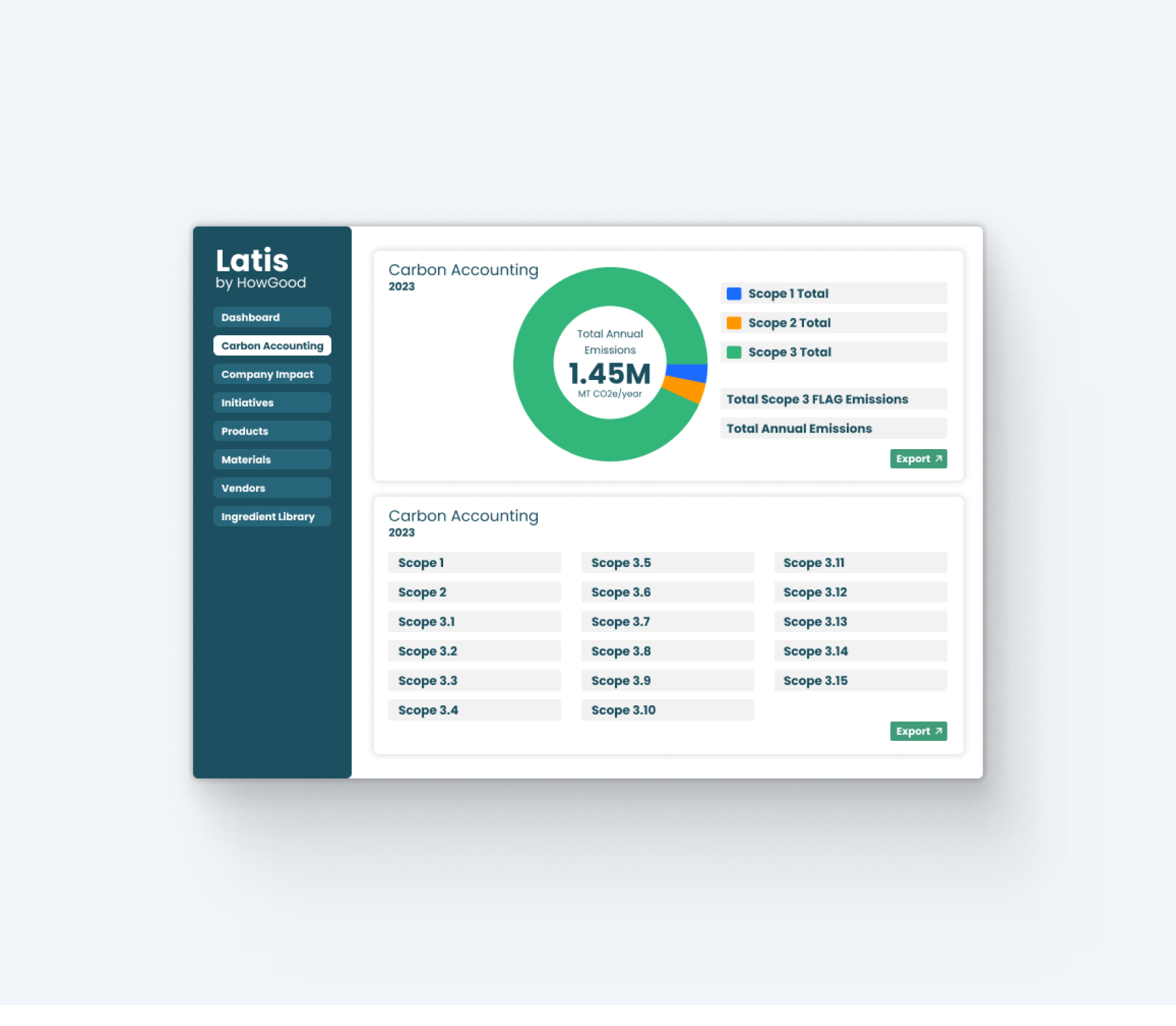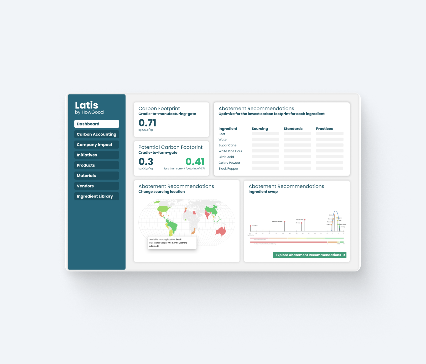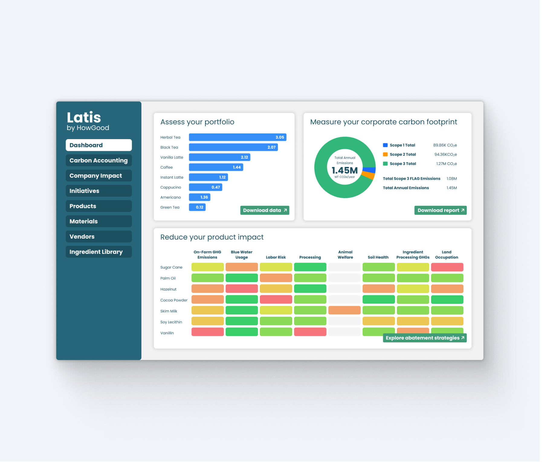 HowGood is a sustainability research company and SaaS platform powering large-scale product footprinting for the food industry. HowGood’s database of more than 90,000 agricultural emission factors is the largest in the world, enabling accurate measurement of environmental and social impact across the food and beverage supply chain. Working with leading brands, suppliers, retailers and foodservice providers, HowGood supports product carbon footprinting at scale, corporate carbon accounting, decarbonization, and supplier engagement to drive a more sustainable and regenerative food system.