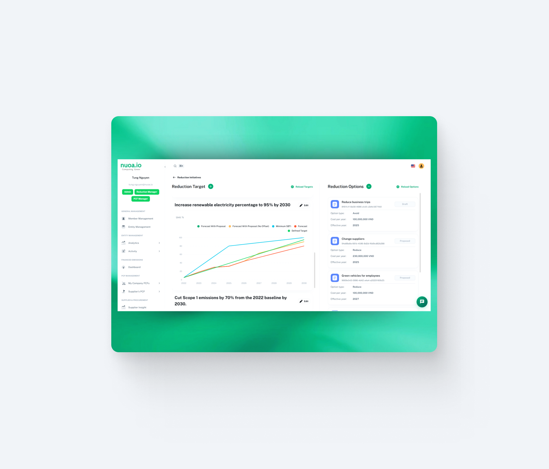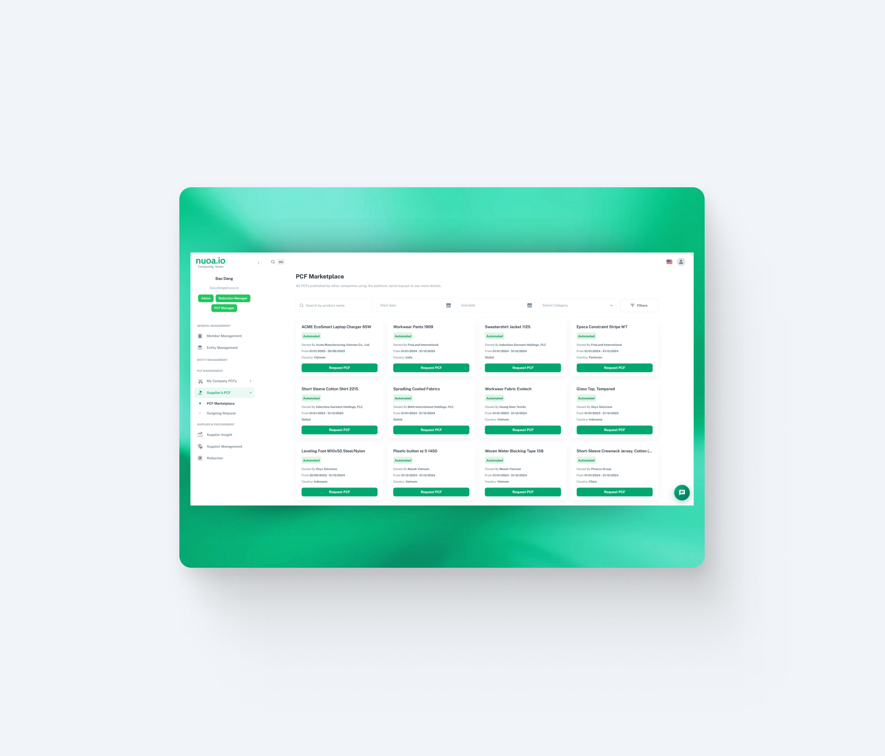 Nuoa.io is an end-to-end supply chain carbon management platform that enables credible net-zero pathways through accurate Product Carbon Footprints (PCF). Built for data-constrained environments, Nuoa helps enterprises measure, manage, and reduce emissions across complex supply chains, from organizational-level GHG accounting to product-level PCF calculations. Unlike platforms relying on industry averages, Nuoa.io uses real operational data to deliver accurate carbon accounting while maintaining full transparency into supplier assumptions across Tier 1 and Tier N. Nuoa.io combines emissions tracking, supplier collaboration, and audit-ready reporting that supports compliance with global standards and frameworks - turning sustainability regulation into operational advantage.